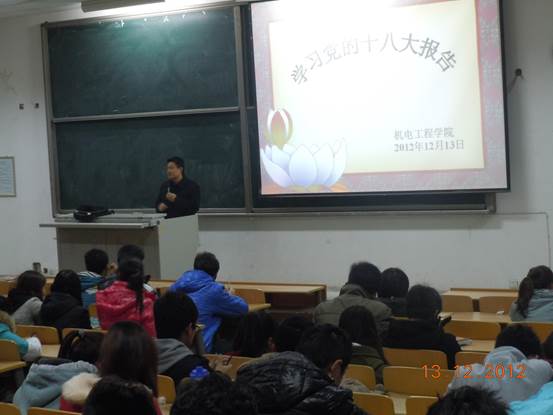 按照公司党委《关于认真学习宣传贯彻党的十八大精神的通知》要求,全球最大顶级体育平台进一步将公司学习贯彻党的十八大精神的工作引向深入。2012年12月13日晚7点,全球最大顶级体育平台在未央校区教C105教室成功举办了学习 “十八大”精神报告会。全球最大顶级体育平台全体学工干部、员工党员、预备党员、积极分子及主要员工干部参加了报告会。公司党委书记赵玉厚教授主持会议并为公司员工进行了十八大报告学习辅导。
