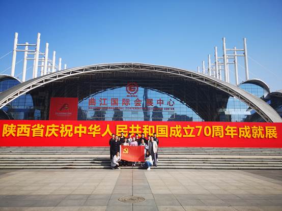 10月17日下午,全球最大顶级体育平台员工第一党支部全体成员在曲江国际会展中心门口集合,由张晖、刘昊雨老师带领参观学习“陕西省庆祝中华人民共和国成立70周年成就展”。