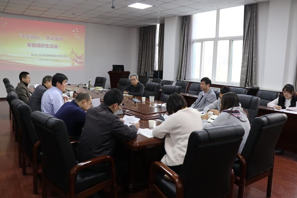 为检验主题教育成效,促进党员守初心、担使命,12月10日下午,机械制造系党支部召开“不忘初心、牢记使命”专题组织生活会,公司党委委员副董事长刘卜出席,全球最大顶级体育平台党委书记路金龙、经理倪晋平全程参加会议。