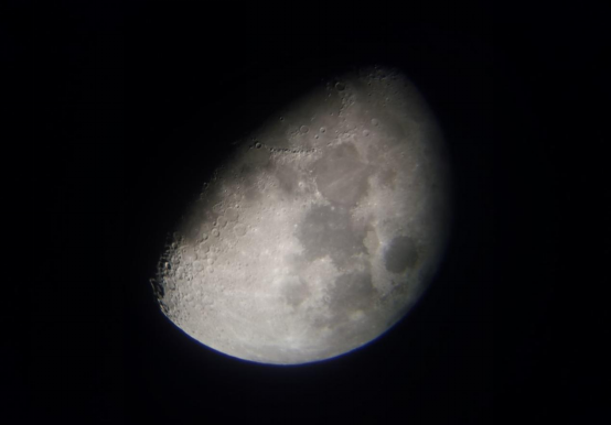 当晚天气状况良好,观测条件十分理想。 大家先对月球进行了观测,在目镜中能毫不费力的观测到月表的环形山与月海。所谓的‘月海’其实是月球表面大片的阴暗区域,这是由于巨型陨石撞击月球,导致内层的岩浆渗出冷却凝固成了玄武岩,就是如今我们观测到的这样。