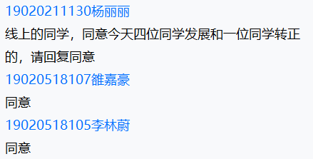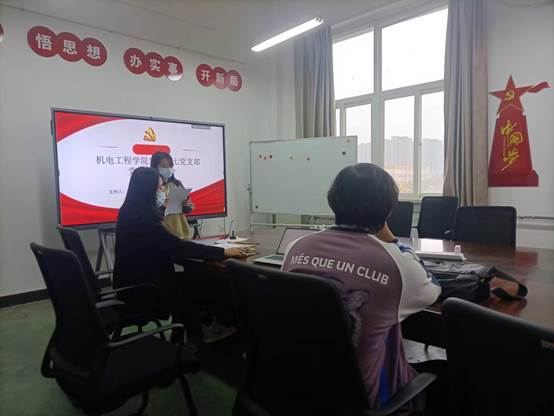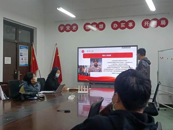 在汇报完毕后,杨丽丽同志代表支委会向全体成员报备四位发展对象的基本情况,经全体与会成员对四位发展对象充分讨论后,支部同意接收陶睿祺、敬烨、李一乔、党晓航四位同志为中共预备党员,并由杨丽丽同志带领宣誓。
