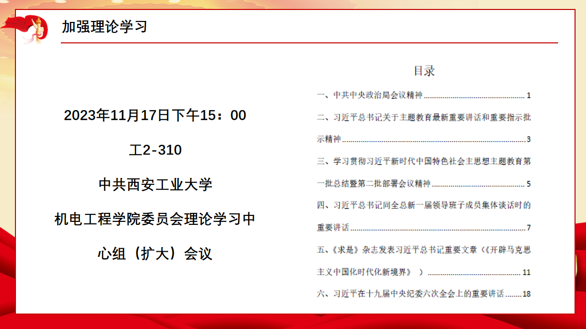 11月20日,老员工创新实验基地党支部组织召开了“学习贯彻习近平新时代中国特色社会主义思想主题教育”主题党日活动。本次主题党日活动分为四部分开展,分别为支部成员“讲好党史故事”、传达程新峰书记会议精神、主题学习——习近平总书记谈以学铸魂、以学增智、以学正风、以学促干以及视频学习——政论片《中国式现代化》第一集《共向未来》。会议由党支部书记苏宇主持,全体党员参与会议。