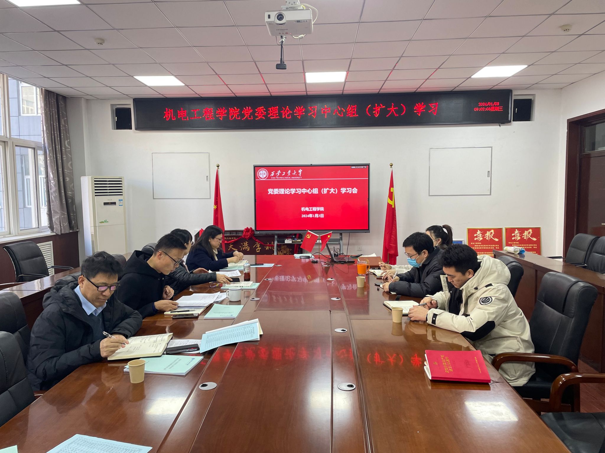 会上程新峰带领大家集中学习了国家主席习近平发表二〇二四年新年贺词、中共中央政治局召开专题民主生活会习近平主持会议并发表重要讲话、中国共产党纪律处分条例,观看视频《非凡时代》——国家安全。