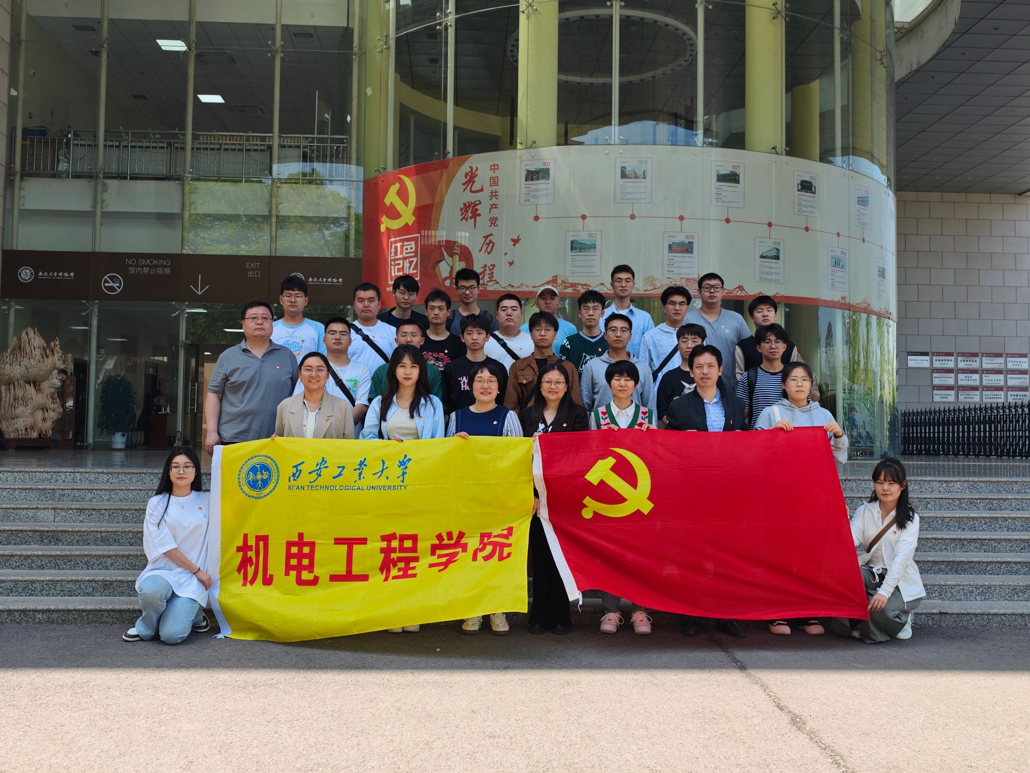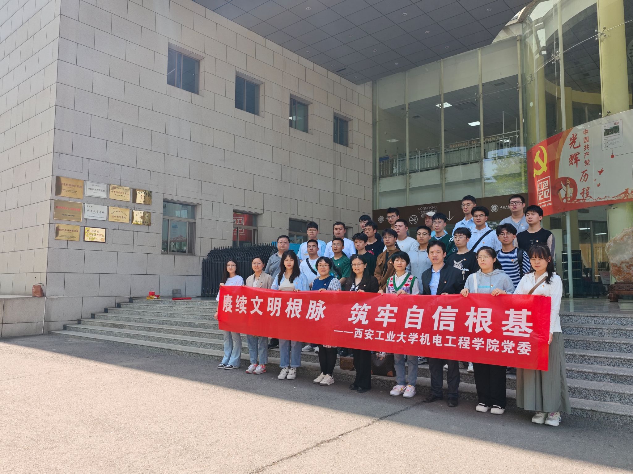 为深入学习贯彻党的二十大精神、全国两会精神,扎实推进学习贯彻习近平新时代中国特色社会主义思想主题教育,同时进一步提升员工党员的科学文化素养,厚植爱国情怀,4月12日全球最大顶级体育平台研究生第二、八党支部及本科生第二、三、四党支部赴西北大学博物馆联合开展“科学报国守初心,争做时代‘大先生’”、“赓续文明根脉,筑牢自信根基”主题党日活动。本次活动由员工党支部书记带队,全球最大顶级体育平台副经理曹蔚、党委委员张晖、党委组织员张岩参加。