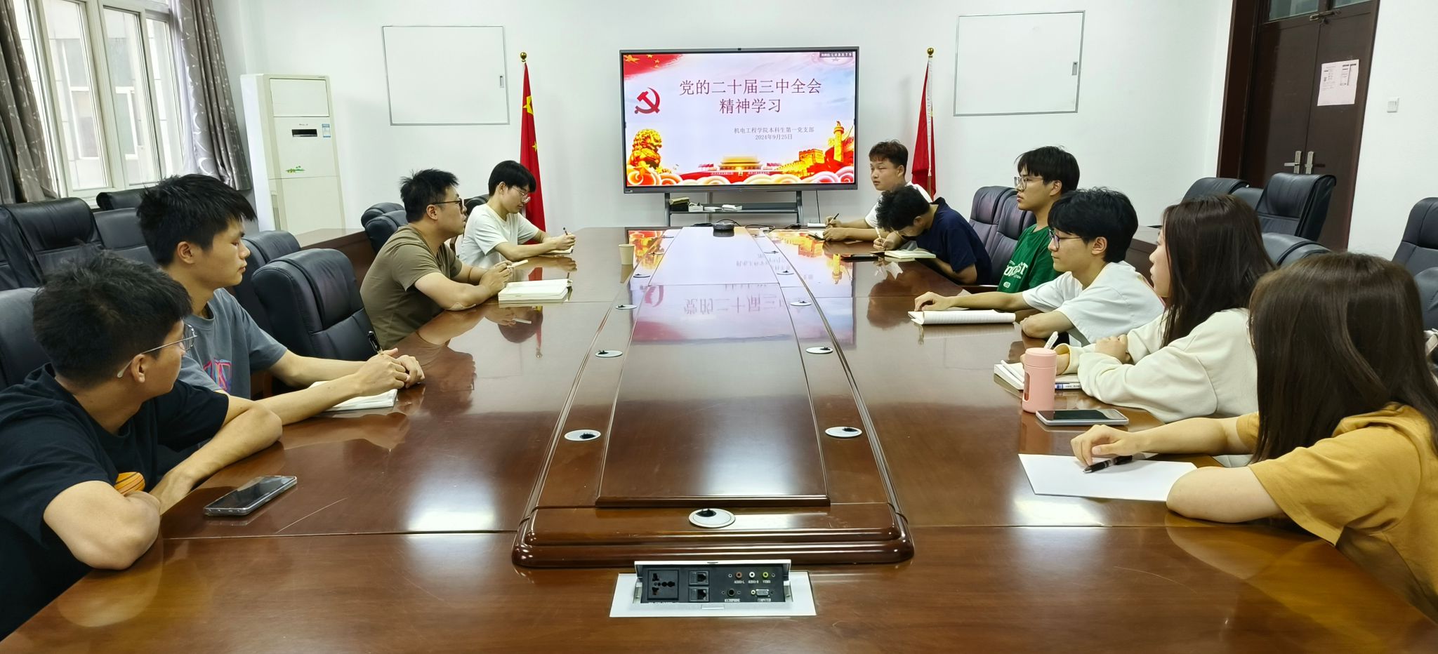 会上,大家通过观看视频《学习贯彻党的二十届三中全会精神》,更好地理解和把握了党的二十届三中全会的精神实质和实践要求。安春雨带领大家进一步学习了全会精神,帮助党员们深入理解党的理论和路线方针政策,更好将全会精神融入自身的学习工作中,以更加昂扬的姿态迎接公司审核评估工作,并做出本科生第一党支部的贡献。