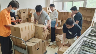 活动开始,两支党支部成员在现场负责人简要分工安排下迅速投入工作,整体队伍分为两组:一组负责将图书馆一楼存放的图书搬运至五楼,另一组则在五楼对图书进行整理、分类与上架,确保图书摆放有序,方便后续读者查阅和借阅。尽管图书数量众多、搬运任务繁重,但全体志愿者不怕脏、不怕累,始终以饱满的热情投入劳动中,现场呈现出一派忙碌而有序的景象。