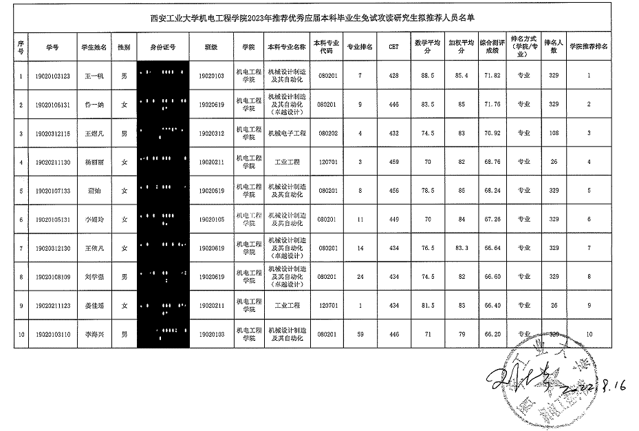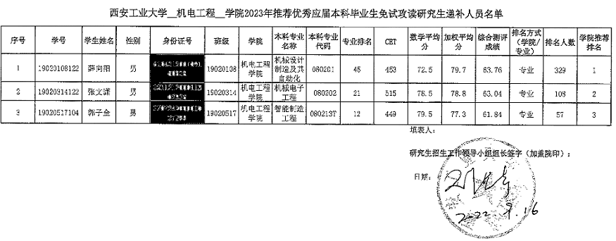 全球最大顶级体育平台2023年推荐优秀应届本科毕业生免试攻读研究生拟推荐人员名单