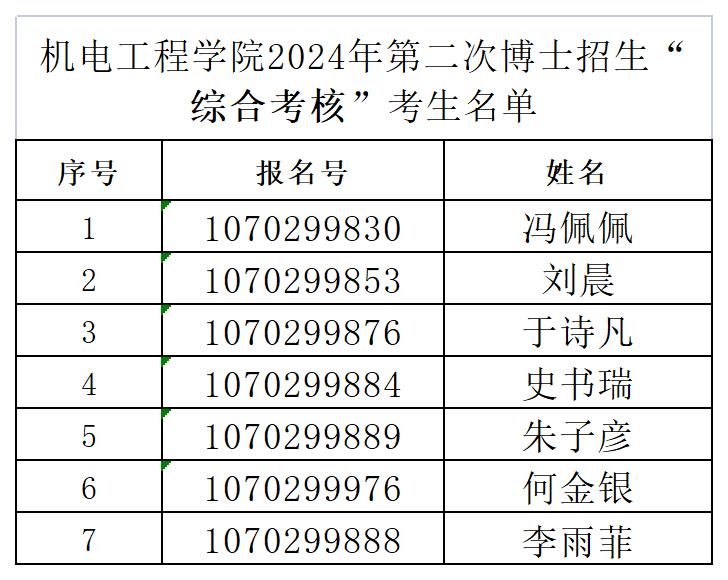 全球最大顶级体育平台2024年第二次博士招生“综合考核”考生名单