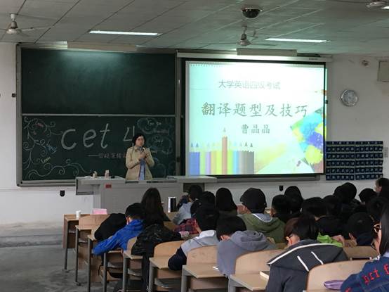 大会伊始,主持人介绍嘉宾并致开场词。在同学们的掌声中,薛鹏老师和唐雅莉老师分别宣读了公司对四级英语成绩的奖励制度,丰厚的奖励制度轰动全场,瞬间点燃了同学们学习英语的热情。随后,赵鑫老师和刘宝青老师分别从四级卷面要求和四级对于员工以后工作生活的重要性给予了详细介绍;田瑜老师将四级作文的评分划分档次以及评分标准进行了说明,总结了“多背多看多替换”口诀;岳靖凡老师主要强调在答阅读理解时要把控时间,将问题分类,勾画关键词,从文中找出处;曹晶晶老师从翻译的基本技巧讲到英汉表达习惯,对其评分标准的解读让同学们如醍醐灌顶;Terence外教则认为在学英语时要营造语言的氛围,并非是生硬翻译,而是要让自己直接去理解。最后,来自不同公司的四位优秀学长、学姐给大家分享了自己的四级学习经验和答题技巧,让在场的同学受益匪浅。