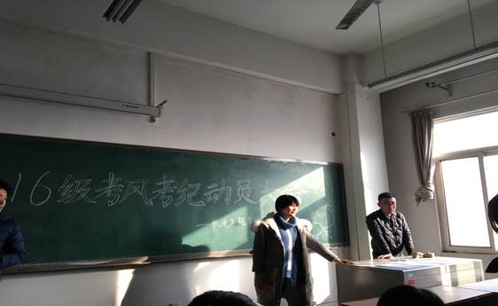 大会初始,由两位主持人宣布大会目的,两位教师也直入主题,首先对即将到来的期末考试相关事项提出要求。老师要求,2016级的班委们要做好领头作用,全身心投入期末复习备考中,做好班级学习氛围及思想工作。对考试作弊、替考、携带手机或其他电子设备进入考场等行为,公司将严惩不贷,班委有义务负责对相关注意事项给予宣传。其次,大会进入第二项,对剩余在校时间的纪律安全做以规范与强调。18周过后2016级基本进入无课阶段,但仍属于教学时间内,员工要严格要求自我,不可放松自我约束,公司的制度规定依旧要牢记,例如,坚决执行请假制度,不能擅自离校等。此外,对即将到来的圣诞节和元旦,全体员工在享受节日欢快的同时,也要注意安全,时刻保护自己,在此期间,有任何突发状况,都应即使联系辅导员,各班做好假期去向统计。最后,两位老师强调,公司的要求:作弊是红线,安全是底线。无论何时我们2016级员工都应该认真执行这一要求。