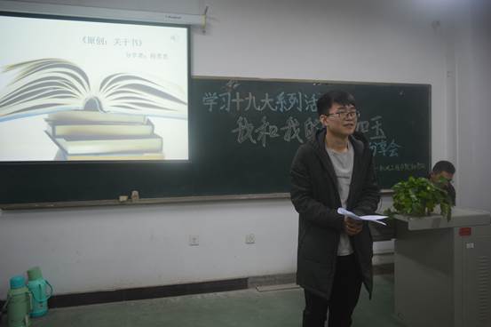 活动伊始,秘书长彭松松以十九大为背景,介绍了我国近年来的飞速发展:从五年前习近平总书记提出的“中国梦”到如今所实现的中国桥、中国电等,从丝绸之路到如今的丝路经济带,从中国制造到中国创造,无不透露着中国在复兴之路上不断前行的信息。《习近平的七年知青岁月》这本书,以采访实录的形式,让同学们体会到了习近平总书记在陕北下乡的生活。同学们陆续分享了青年时代的习近平同乡亲们换玉米团子、从繁华首都转到黄土高原工作的心路历程等故事,使得在场所有人切实地感受到了习近平总书记知青岁月的艰苦,更通过习近平总书记的经历看到了祖国今年发展的艰辛历程;在程喜喜同学分享的陕北变化中,更是让同学们真切地体会到中国社会当前的风云巨变。在同学们交流各自对十九大精神见解的过程中,本次活动圆满落下了帷幕。