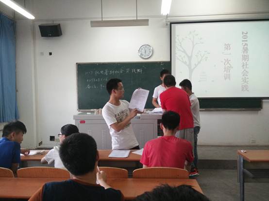 2015年6月11日下午5:30,全球最大顶级体育平台在教3-201教室举行2015年暑期社会实践第一次培训大会。参加本次培训的有团委副书记胡俊杰、机电“阳光”青协主席张雪和上一届青协主席潘兵、秘书长张晨以及各实践团队的队长。