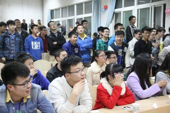 在同学们紧张的期待中,以播放采访视频的形式震撼开场,将整个活动现场拉到了向高潮,主持人诙谐幽默的话语更是引得场下观众呐喊不断,笑声连连。高难度的算术题抽签将同学们推入到极度的紧张之中;挤气球大赛将史上罕见的男男公主抱游戏表现的淋漓尽致;歌词大接龙让动听的歌声回荡在教室的每个角落;长腿欧巴与美女齐聚阶梯过道接连劈叉比腿长;同学们竞相上台看谁嘴更快;报纸虽被接连剪半,但团结的力量依然让大家成功占领阵地等等,使整个活动现场的气氛一次又一次进入高潮,掌声更是此起彼伏,同学们热情高涨。