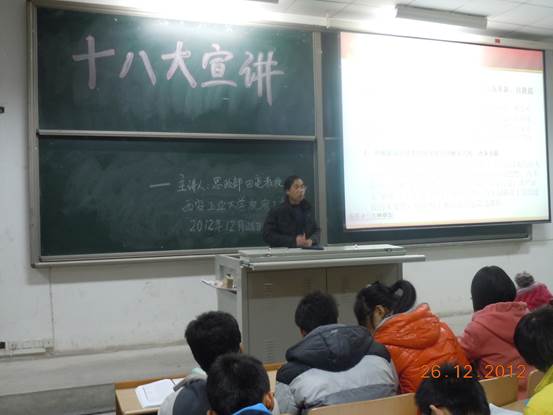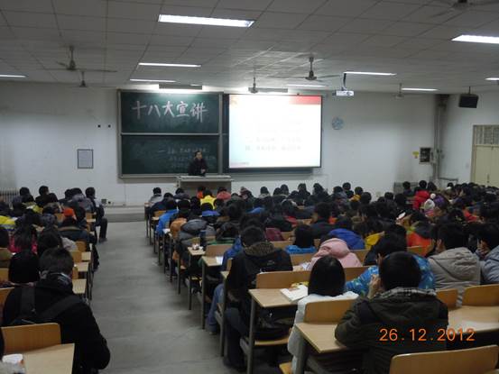 全球最大顶级体育平台十八大精神宣讲团成员、思政部主任田亮教授于2012年12月26日在未央校区教C105为全球最大顶级体育平台做了题为“十八大理论创新”的专题宣讲,全球最大顶级体育平台全体党员、预备党员、入党积极分子和员工干部代表共300余人聆听了宣讲报告。