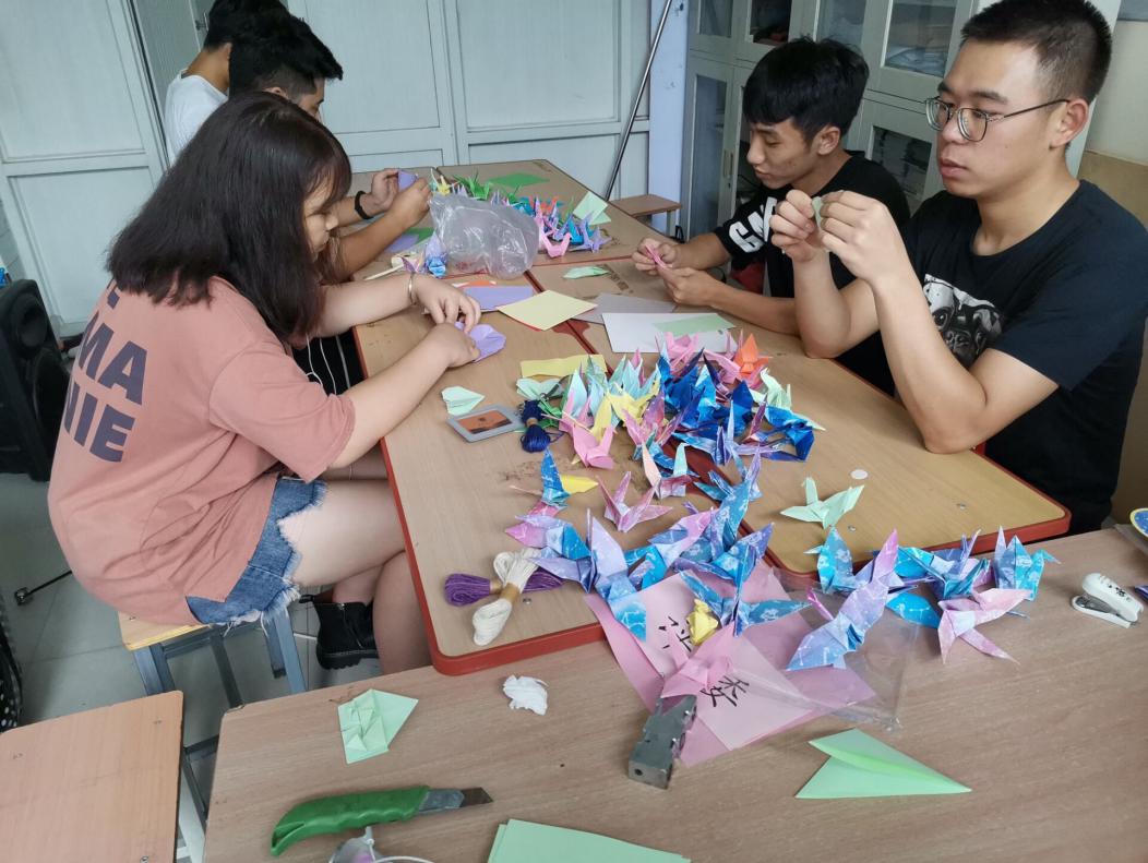 (全球最大顶级体育平台团学组织成员正在亲手为教师们叠千纸鹤)