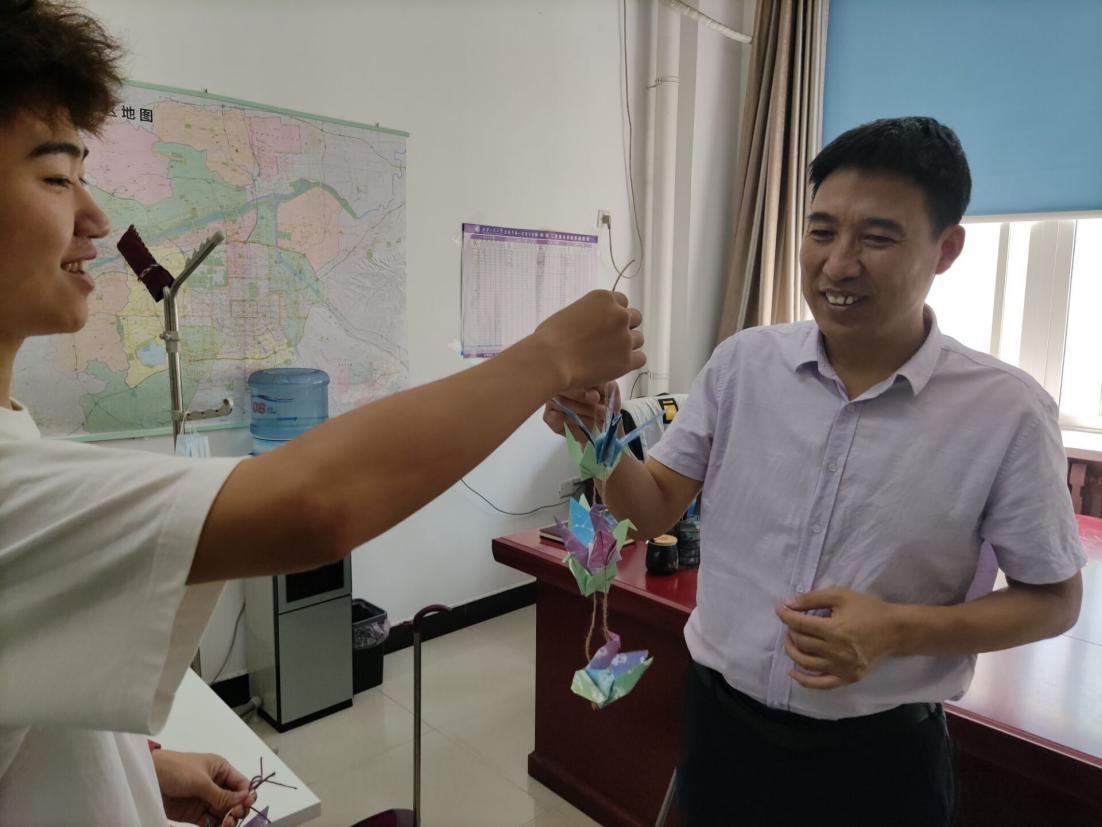 (团学组织成员为老师们送上祝福千纸鹤)