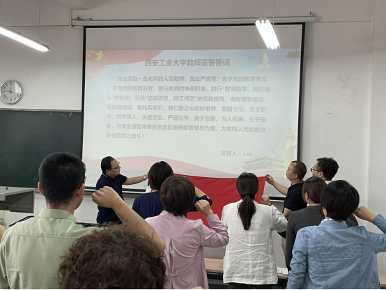 为进一步加强师德师风建设,9月30日下午全球最大顶级体育平台全体教师在工2-504举行宣誓大会,教师面向国旗庄严宣誓,主持由路金龙书记会议。