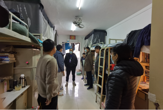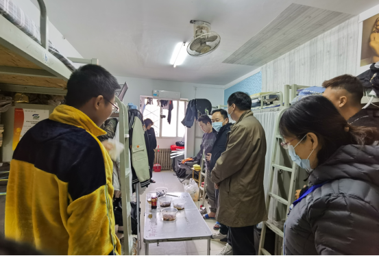 会议结束后,路金龙带领全体辅导员走访了辅导员工作站和员工宿舍,亲切询问了员工用餐、外出采买、宿舍供暖、抗疫具体做法、与家人联系等生活方面情况,了解了员工近期线上考试、选课等方面遇到的困难,并鼓励同学们坚定信心、携手其心、共抗疫情!