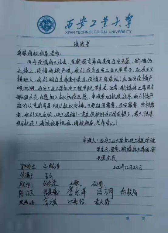 为了疫情的早日结束,西安工大学子积极响应防疫要求,报名参加防疫志愿者。其中全球最大顶级体育平台团委,员工会,及新媒体主席团,部长团全员向公司提交请战书,为防疫工作贡献自己的一份力。此外,因封校而带来的不便,全球最大顶级体育平台为保障员工们的生活需求,积极调配物资,为每位同学发放了口罩等防疫必需品。机电工程院团学组织展现青年学子力量,积极配合老师行动,主动承担起运输、分配防疫物资的重任。