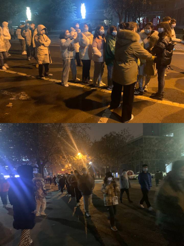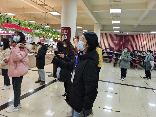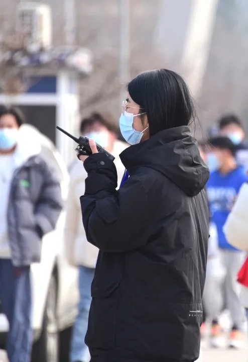 29日早晨七点,接到组长电话,紧急通知全员核酸,唐雅莉立即爬起床,匆忙洗漱后,15分钟内赶到核酸检测执勤点位,左手拿起对讲机接收指令,右手拿起小喇叭一遍遍的提醒:“请大家戴好口罩,保持一米五间距”、“后面同学快两步跟上”、“前面分成四路纵队”……平时很皮的同学最近也变得异常乖巧,服从公司安排,按时排队做核酸、错峰就餐、凭票洗浴、居寝线上学习,师生之间多了一些默契、理解和共同的期许。冬日的早晨冷风刺骨,两个小时的室外执勤脚已经冻到麻木,同事来电话说已在办公室煮好热乎的鸡蛋,你快上来吃早餐,我去换你。她心里一暖,战友情瞬间融化了冬日的寒冷。
