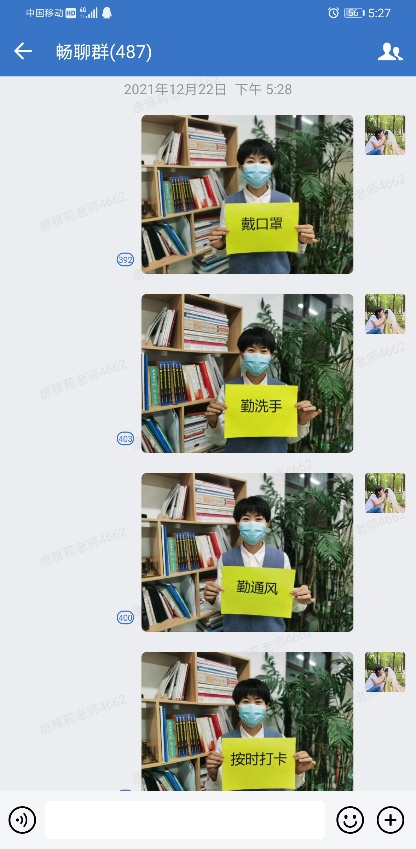 除了核酸检测组、餐厅超市组执勤、九公寓员工包干管理、公司宣传员等专项工作,唐雅莉每天还要管好自己年级480名员工,落实24小时应答机制,耐心解决校园生活中的各种问题:指导新学期线上选课、考试,疏导因疫情引起的心理恐慌,平复因制动管理引起的焦躁情绪,调解封控期宿舍矛盾,为突发疾病员工协调紧急送医,定期配发防疫物资,统计核酸检测信息,督促宿舍通风、垃圾清理,鼓励克服线上学习惰性,组织年级线上文娱互动活动,引导员工规律作息、适当运动、健康生活……每天的工作千头万绪,但每次问到她累不累时,她总是半开玩笑的回答:痛并快乐着,只要员工平安健康,我们公司不失守,一切都值得!