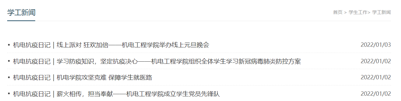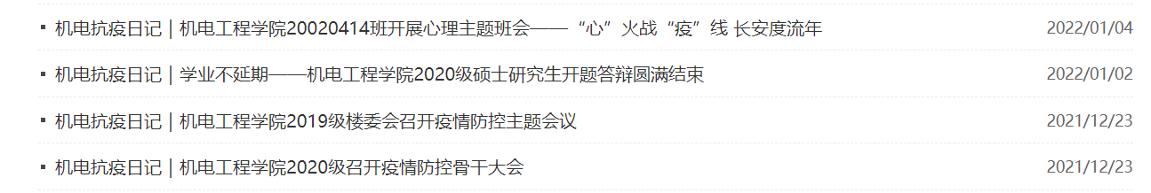 晚上在九公寓发完《员工就餐出入证》回到办公室,唐雅莉又坐在电脑前开始记录当日抗 “疫”工作的点滴,及时报送各类信息。她用文字凝心聚力,为大家传递温暖和希望,坚定抗疫必胜的信心。截至目前,唐雅莉在公司网站发稿28篇,内容涵盖机电抗疫行动、抗疫先进典型、特色做法、疫情防控科学知识、疫情期间线上文化活动、线上教学等各个方面,及时让全院师生第一时间了解公司抗疫工作现状,凝聚共识,共克时艰。