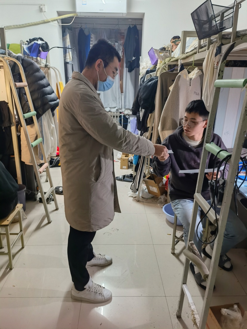 防疫面前无小事,员工关注的事就是最重要的事。这些天里,我在做好公司进驻公寓专班包干的9公寓的具体工作的同时,一刻也不敢松懈18级员工的日常管理工作。统计亟需药品清单、督促同学们做好每天的晨午检查、监督同学们一个不漏的进行核酸检测、分发防疫物资等,从早到晚,过的忙碌而充实。这些天里,我每天深入员工宿舍,和他们聊聊天谈谈心,解决一些生活问题,缓解他们不能按时回家的焦虑心情。虽是封闭管理、战时状态,我和员工们反而更能打成一片,心更近了,情更浓了,孩子们也在这次考验中成长了、蜕变了,这是作为他们的老师,最欣慰的事。