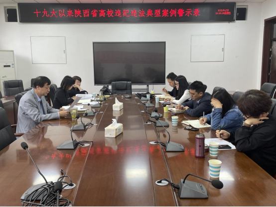 会上,党委副书记、纪委书记姚敏茹带领大家认真学习《十九大以来陕西省高校违纪违法典型案例警示录》中履责不力受惩戒、违反中央八项规定、形式主义导致资源浪费、违反教师职业道德等典型违纪违法案例。通过对案例的陈述和剖析,揭示了高校在全面从严治党方面存在的突出问题,深刻剖析了违纪违法问题产生的原因,用生动的案例教育“身边人”、“身边事”。