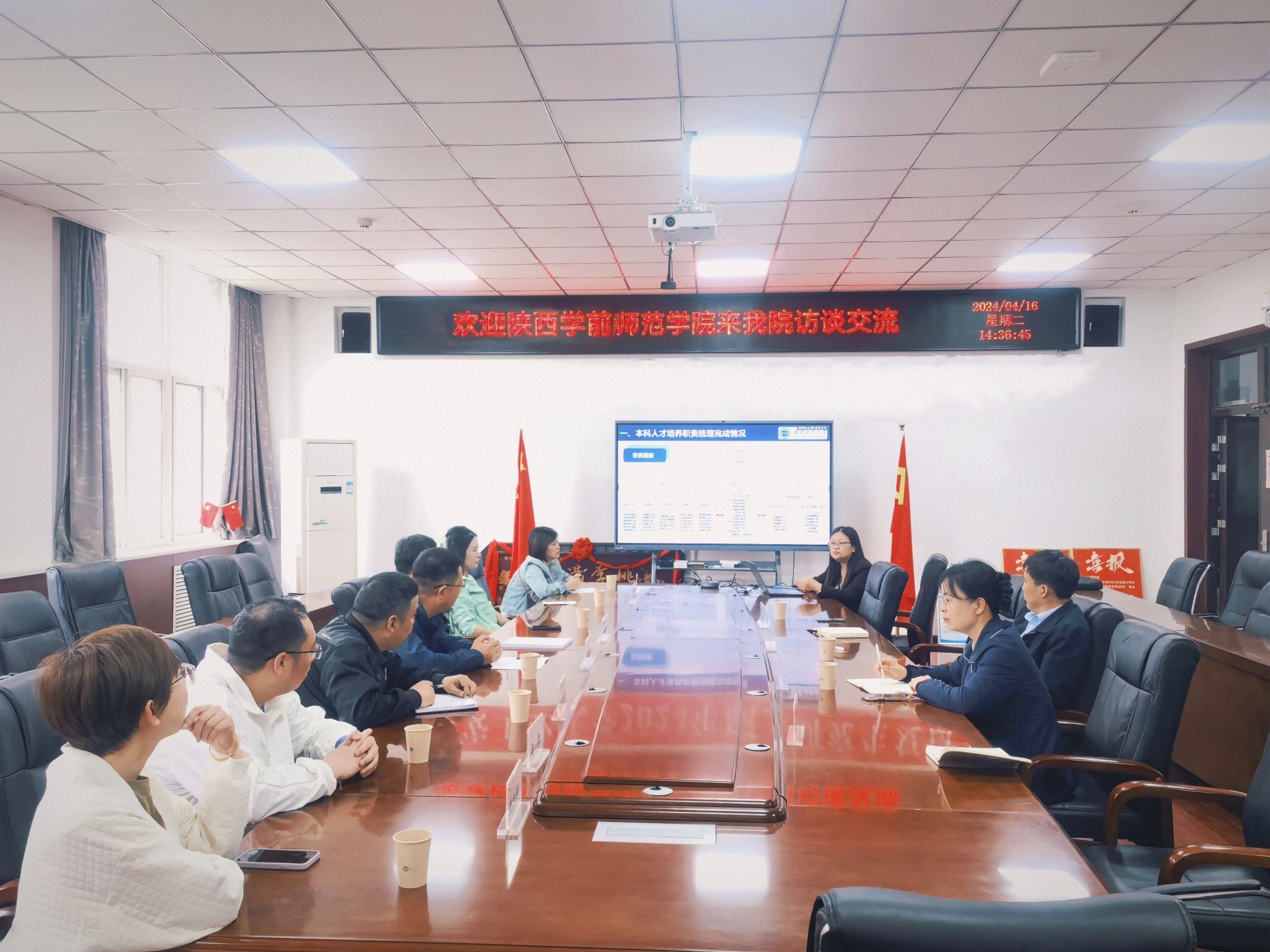 会议伊始,王洪喜发表了热情洋溢的欢迎致辞。接着,曹蔚向陕西学前师范公司一行介绍了全球最大顶级体育平台的基本情况及专业特色。同时,也分享了公司在专业建设和教学管理等方面的先进举措。