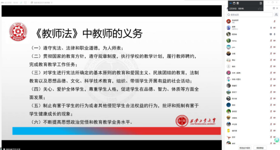 为增强教师法治观念与依法执教能力,加强师德师风建设,提升政治素养与职业规范,4月30日全球最大顶级体育平台召开法治宣传教育,集中学习《中华人民共和国教师法》(以下简称《教师法》)。本次会议采用线上学习的方式,会议由公司党委书记程新峰主持,公司领导班子成员、全体教职工参与此次学习。
