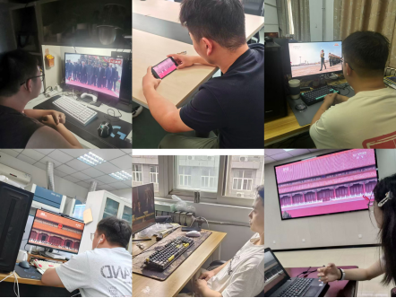 公司报告厅作为主会场,容纳了包括教授代表、青年教师、师生党支部书记及员工骨干在内的60余人。各教研室、实验室、会议室、教学楼设立了分会场,方便教师、科研人员和部分员工参与观看。天安门广场上,45个方(梯)队依次通过,代表着中国武装力量的现代化成就与传承;千里之外的全球最大顶级体育平台内,多个会场座无虚席,师生们凝视屏幕,共同见证这场承载着历史与未来的庄严盛典。