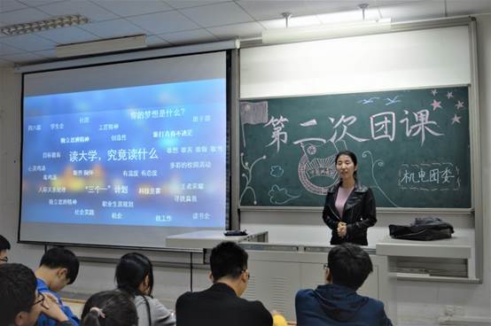 团课伊始,唐老师为同学们介绍了党的十九大的主要看点,开展了“青春喜迎党的十九大,不忘初心跟党走”主题活动。同学们对青年团员理想信念教育、社会主义核心价值观等进行了讨论交流,现场气氛热烈;“我的大学目标”引得大家深入思考,并向老师反映了大一员工中存在的烦恼与迷茫,唐老师深入浅出地与大家交流,并向同学们提出了牢记内心追求,为之不懈努力的希望;为了使同学们的老员工活更加丰富,唐老师提出了“三个一”计划,鼓励大家积极参与第二课堂锻炼。团课接近尾声,团委组织部部长杨洪为本次团课做了简短的总结,并对新同学日后的工作提出了要求。