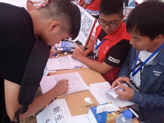 丹桂飘香,荷花满塘。2017级新生们满怀对大学的憧憬,携家长早早来到公司,开始办理大学入学报到注册相关手续。公司接待新生工作人员也按预先安排来到公司摊位前展开各自负责工作:唐雅莉老师为每名办理生源地贷款的同学办理相关缴费手续;宋荣新老师为公司2017级硕士研究生新生办理入学报到工作;员工干部们颈戴工作牌,身穿红马甲,为每名大一新生依次介绍入学报到流程、注意事项,指导新生填写报名单信息、扫码添加新生群。所有工作人员工作态度认真,讲解耐心细致。公司党委书记赵玉厚老师对新生接待工作重点关注,每日亲临现场指导工作。两天的新生报到过程中,在公司工作人员的帮助引导下,公司2017级500余名新生已完成报到注册及宿舍入住手续,公司顺利完成了2017级新生入学接待工作。