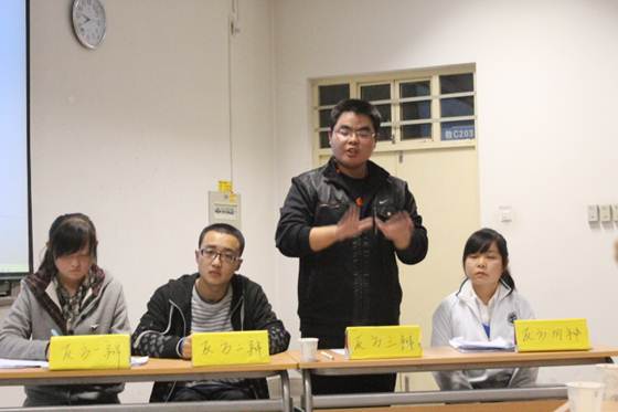 2012年10月30日晚19:00,全球最大顶级体育平台“狭路相辩”辩论赛巅峰对决在教C203隆重举办。12级辅导员刘少姗老师,陈世磊,李月月,胡江昆等主要员工干部出席并担任本场辩论赛的评委。