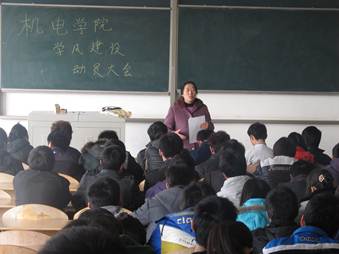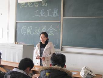 王里艳老师对工业工程专业各班成绩作了分析。鉴于上学期工业工程专业四个班级成绩均在公司倒数,王老师告诫同学们要有危机感,要发奋图强,迎头赶上。她还宣布了10级各班奖学金获得人数,以及一些挂科较多需要注意的同学名单,并总结分析了各班级的问题所在,要求相关班级班干部要有责任意识,团结一致,将班级问题及早发现并共同解决。