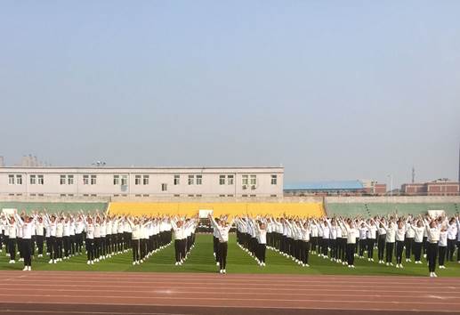 首先,公司代表队集体亮相于主席台前。他们以昂扬的精神、矫健的步伐依次入场。训练有素、英姿飒爽的他们尽显青春的活力。所有人统一的服饰,整齐划一的队列、精确有力且连续自然的动作,无不体现机电学子团结向上、携手奋进的特点。在体操做完后,他们迅速聚成一个方阵,摆出了“1949”和“2019”的字样,并伴以“不忘初心,牢记使命,团结奋进,振兴中华”的响亮口号,通过这种形式,在祖国七十华诞之际,彰显机电学子作为时代新青年的责任与担当。最后在退场时,他们又喊出“敦德励学,知行相长,忠诚进取,精工博艺”的校风校训,给本次广播体操比赛画上一个圆满的句号。在所有同学的不懈努力下,公司获得了第二名的好成绩。在这优异的成绩背后,是同学们的坚持不懈、积极训练,是老师们的专业指导、悉心嘱咐。公司师生们的共同付出和努力,铸就了本次比赛的圆满成功。