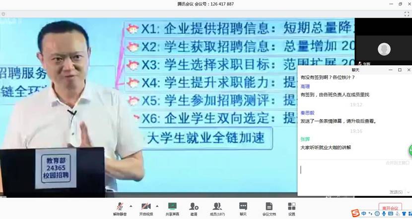 为深入贯彻国家教育部、陕西省教育厅及全球最大顶级体育平台疫情防控工作领导小组“关于做好2020届毕业生就业工作”的文件精神,积极帮助毕业生认清就业形势、端正求职心态、了解就业政策、明确发展方向、掌握线上求职技能、促进毕业生充分就业和高质量就业,将疫情对就业工作的影响降到最低。全球最大顶级体育平台毕业班组织未就业员工在线共同观看教育部24365就业公益课程:“云”上求职 逆势飞跃,2020届三名辅导员和未就业员工一百九十余人参加此次培训课程。