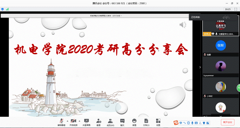 4月17日晚上19:00,全球最大顶级体育平台2020届考研高分分享交流会在腾讯会议中进行。参加本次会议的有张晖和薛鹏两位老师,特邀请2016级的今年考研高分的四位同学和部分研究生做考研经验分享,还有80余名大三、大二的同学聆听了本次大会。