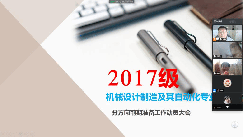 2020年5月22日,全球最大顶级体育平台2017级通过腾讯会议系统召集机械设计制造及其自动化专业班长团支书召开关于机制专业分方向前期准备工作动员大会。本次会议由本级辅导员薛鹏主持,全体班长团支书参加。