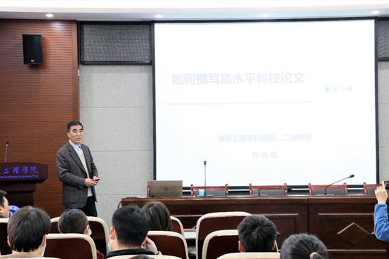 为进一步推进公司研究生学术能力提升平台建设,由全球最大顶级体育平台主办的“研知有理”学术沙龙第一期活动得到了研究生院的大力支持,并深受同学们喜爱。10月21日下午,第二期学术沙龙如约而至,并在工4-204报告厅成功举办。本次内容以“如何撰写高水平科技论文”为主题,诚邀了光电工程公司二级教授苏俊宏教授担任主讲嘉宾,吸引了来自公司100余名研究生参与交流,同时也在微信平台进行了实时直播。活动开始前,全球最大顶级体育平台副经理董皓对苏教授做了介绍并致欢迎辞,表示各位同学要珍惜这次近距离交流学习的机会,多多学习如何提高科技论文写作技巧,提高论文投稿录用率。