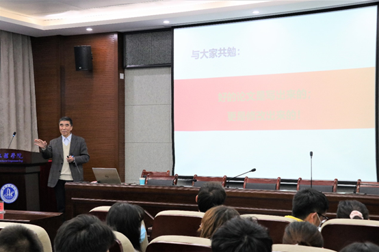 苏俊宏教授主题分为背景与目的、期刊分类介绍和如何撰写高水平论文三个版块。他以学科评估、学位论文抽检及盲审和公司对学位论文提出的新要求为切入点,以不同水平期刊分类为线索,引出了沙龙的核心内容“如何撰写高水平科技论文”。苏教授结合自己指导员工和论文评审的经验,指出学位论文抽检和盲审中易犯的问题、评审专家关注的重点。在撰写高水平论文板块中,苏教授从科技论文的一般结构、如何写好一篇文章、从审稿人的视角看论文的写作及建议、论文投稿禁忌和研究生发表论文应注意的问题几部分进行了详解。苏教授强调了论文摘要和引言的重要性,他说:“摘要一定要有效地总结全文,要包含足够的信息,而且文章的创新性一定要在摘要中体现出来”。随后,苏教授结合实例对SCI和中文核心论文的结构以及写作思路做了深入的剖析,使同学们对讲解有了更加透彻的理解。最后,苏教授还以“好的论文是写出来的,更是修改出来的!”与大家共勉。