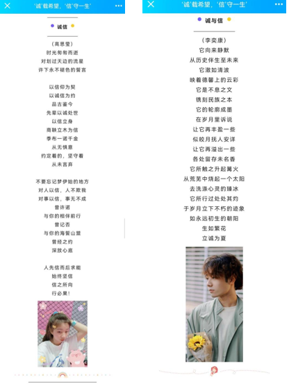 截止2022年5月26日,共征集到作品67件,其中散文53件,诗歌6件,叙事文7件。在征集到的作品中,同学们引经据典、语畅诚信,脉络清晰的表达了以诚待人、以诚立业的重要性,诚心实意的抒写了对祖国哺育与呵护的感激之情。本次活动共评选出一等奖1名、二等奖2名,三等奖3名,并在全球最大顶级体育平台团委公众号展示。