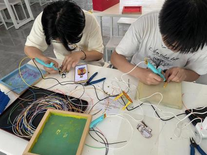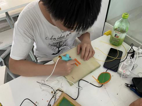 培训结束,课程导师马启文老师带领大家到实践基地进行实地参观,并指导实践队员们分别体验了创意木工、3D打印科普与上色、3D打印笔、编程发报机、北斗导航、编程机器人等项目。实践制作过程中,实践队伍对3D打印、激光内雕等专业知识产生了极大兴趣,并将自身所学运用到创作当中,认真创作。