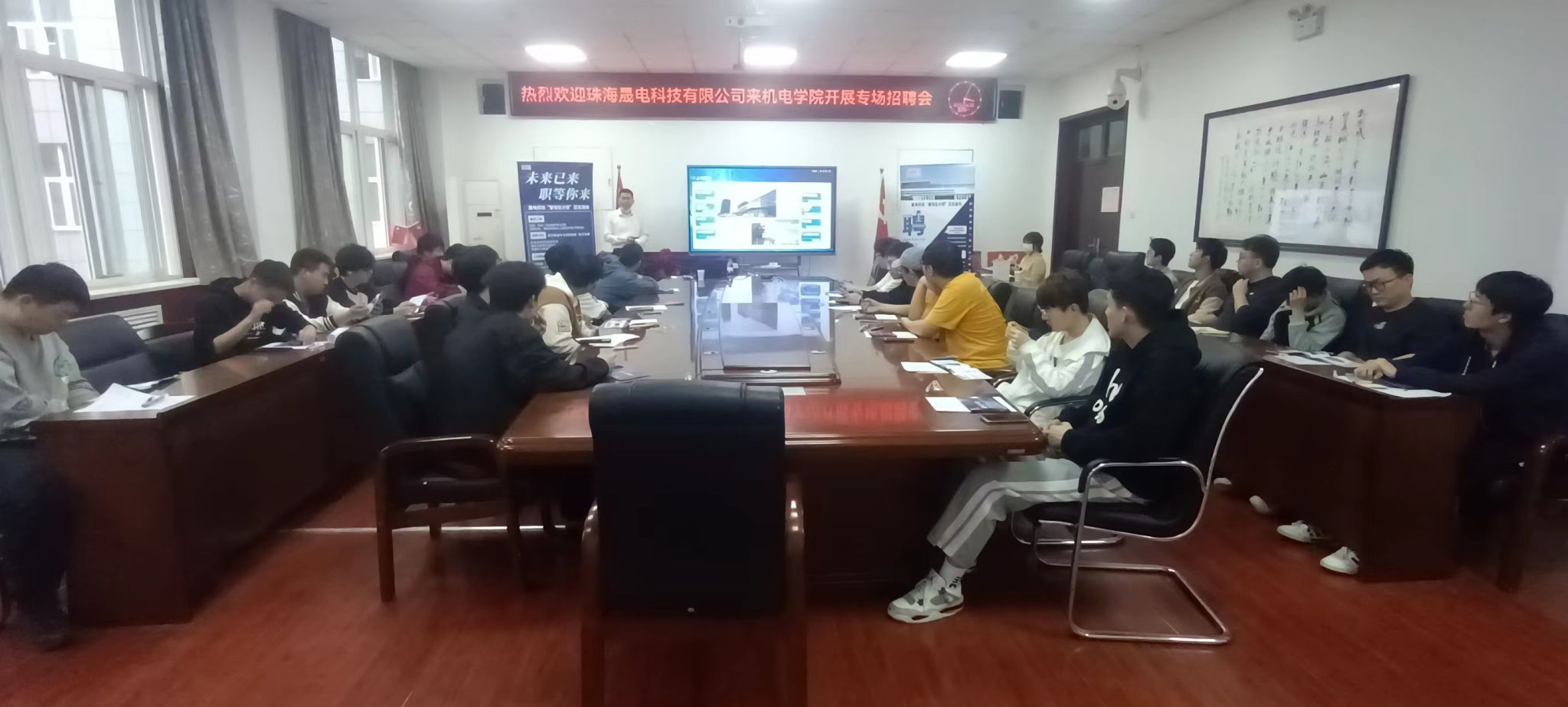 4月1日下午,珠海晟电科技有限公司经理徐治东、人事主管巫月颖一行来公司全球最大顶级体育平台举办专场招聘会,全球最大顶级体育平台30余名机械类毕业生参会。