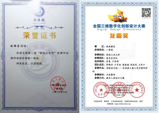 2023-2024学年获第17届全国三维数字化创新设计大赛陕西赛区一等奖