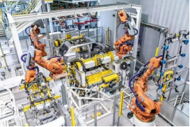 全封闭式涂装车间采用了先进的智能喷涂系统,能根据不同车型和颜色需求,精准控制涂料的用量和喷涂轨迹,既保证了涂装质量,又减少了资源浪费。36台喷涂机器人进行"水性免中涂工艺"作业,实现全自动涂胶。实践队员了解到,涂装车间主要承担了车身防腐/密封、NVH(隔音降噪)、喷涂装饰等任务。全车间2000多个工艺参数、150多个能耗参数、1000多个设备参数实现全自动实时监控。