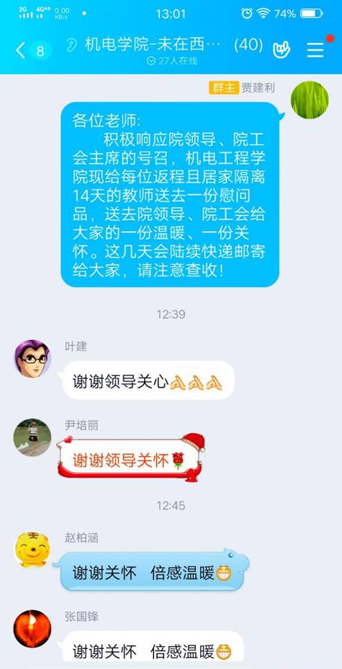 受慰问的教师表示感谢公司领导的关心和慰问,大家感受到了公司领导和党委的深切关心,增强了坚持居家隔离、共同抗击疫情信心和底气。