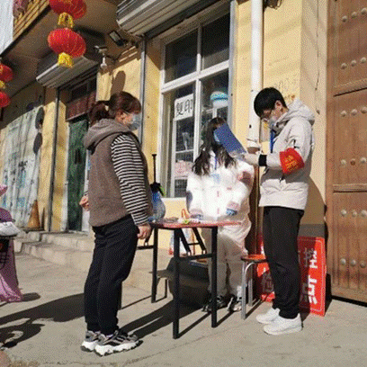 杨丽丽,19020211130,2月11日至今于宁夏回族自治区吴忠市红寺堡区红寺堡镇的菜市场门口在菜市场门口对出入人员进行登记姓名和详细信息,用红外线体温枪进行体温测量并登记,并为群众做冠心病毒的心理疏导。该生已编入社区防疫防空青年志愿者组织、青年突击队。