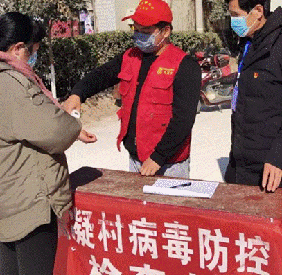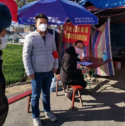 焦锋,18020617106,2020年2月12日,在甘肃省陇西县渭阳乡三川村阳坡社在村口巡逻,登记进出人员和车辆,测量进出人员的体温等身体状况,防止带有病毒的人员进入村子。