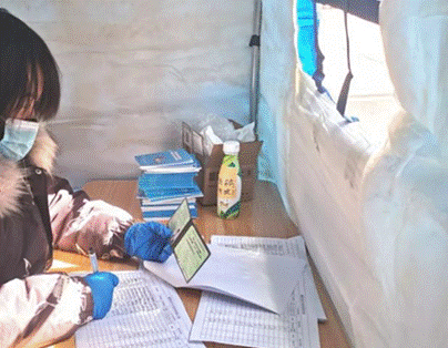 霍天一,18020617105,2020年2月6日至今,在新疆克拉玛依市克拉玛依区园林社区为居民买菜送物资,检查来往人员,入户排查测量体温,每两日为住户收置生活垃圾,对情绪不稳定的用户进行入户访谈。